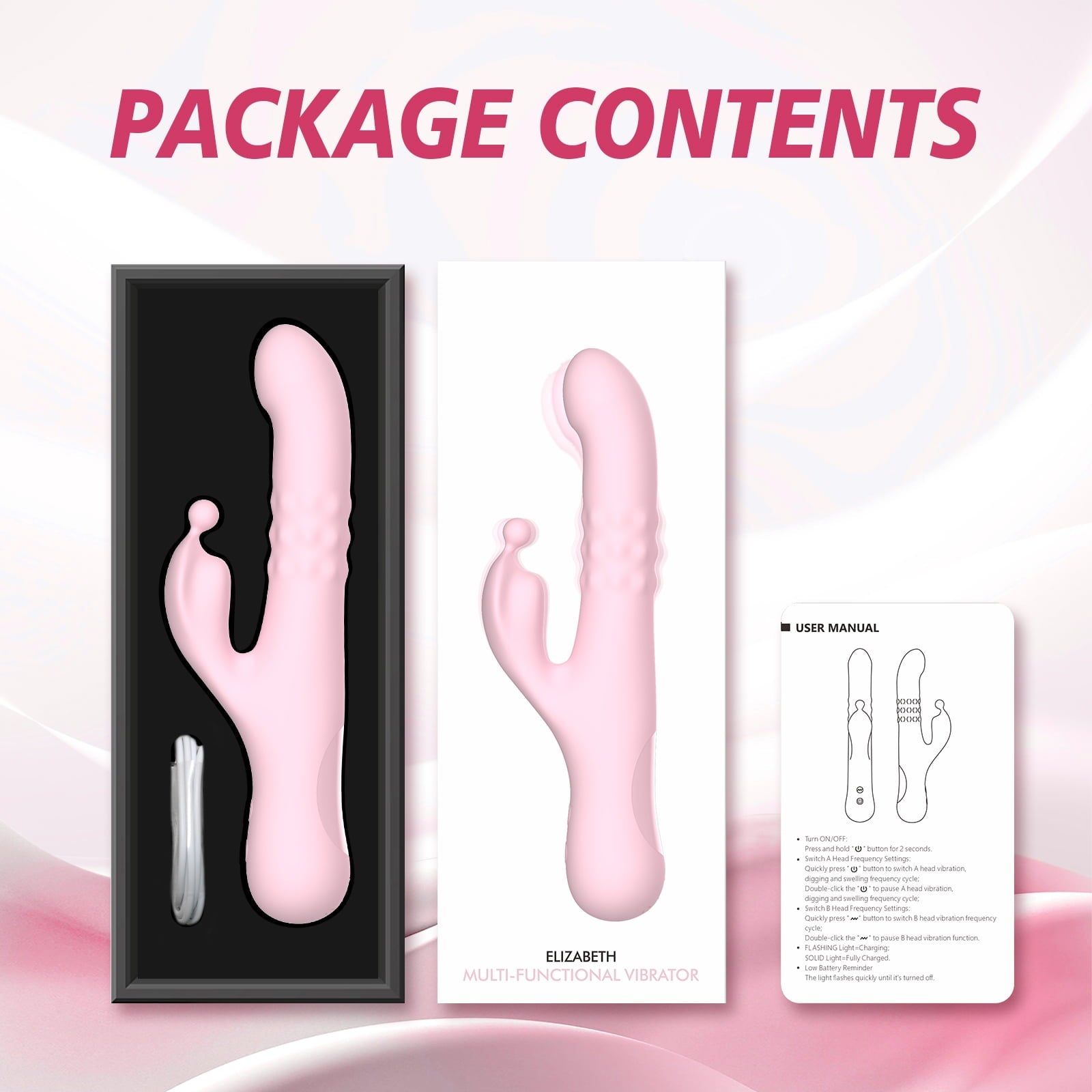 - 4-IN-1 VIBRATORS - STIMULATES INSIDE AND OUT:Stimulating both inside and out makes achieving the Big "O" easier. The female vibrator combines external clitoral stimulation with internal vibrations and tapping, targeting the C-spot A-spot and G spot.